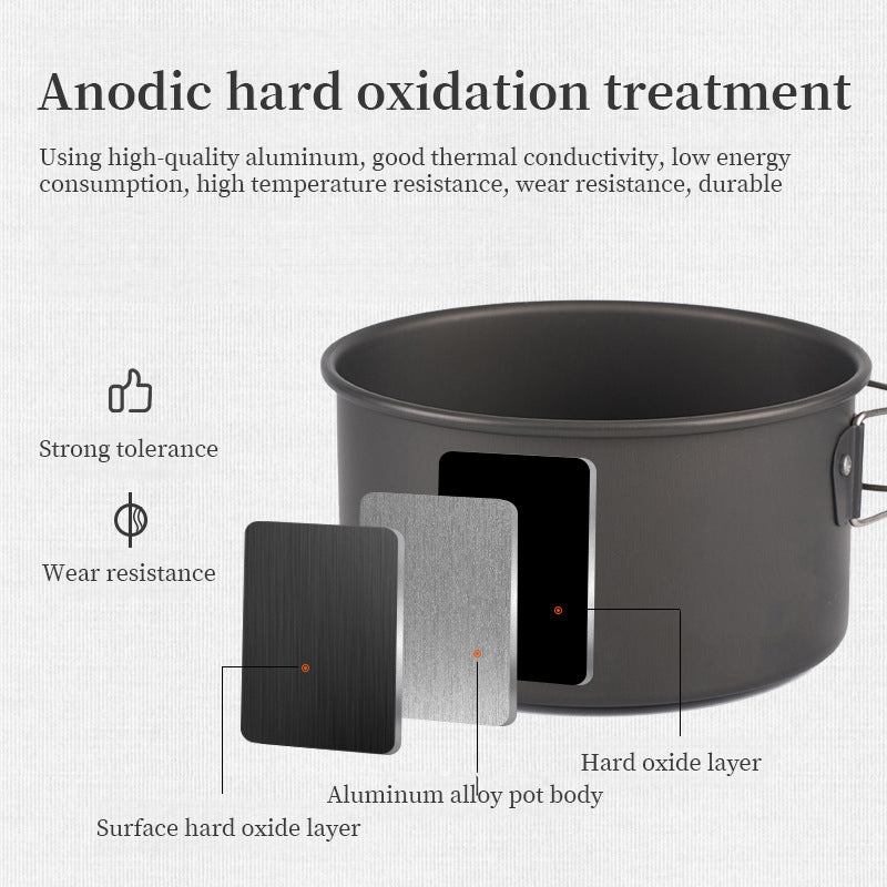 The Camping Cookware Set is carefully designed to meet the requirements of outdoor adventurers. Its high - grade anodized aluminum construction guarantees even heat spread, enabling you to cook delicious meals effortlessly.